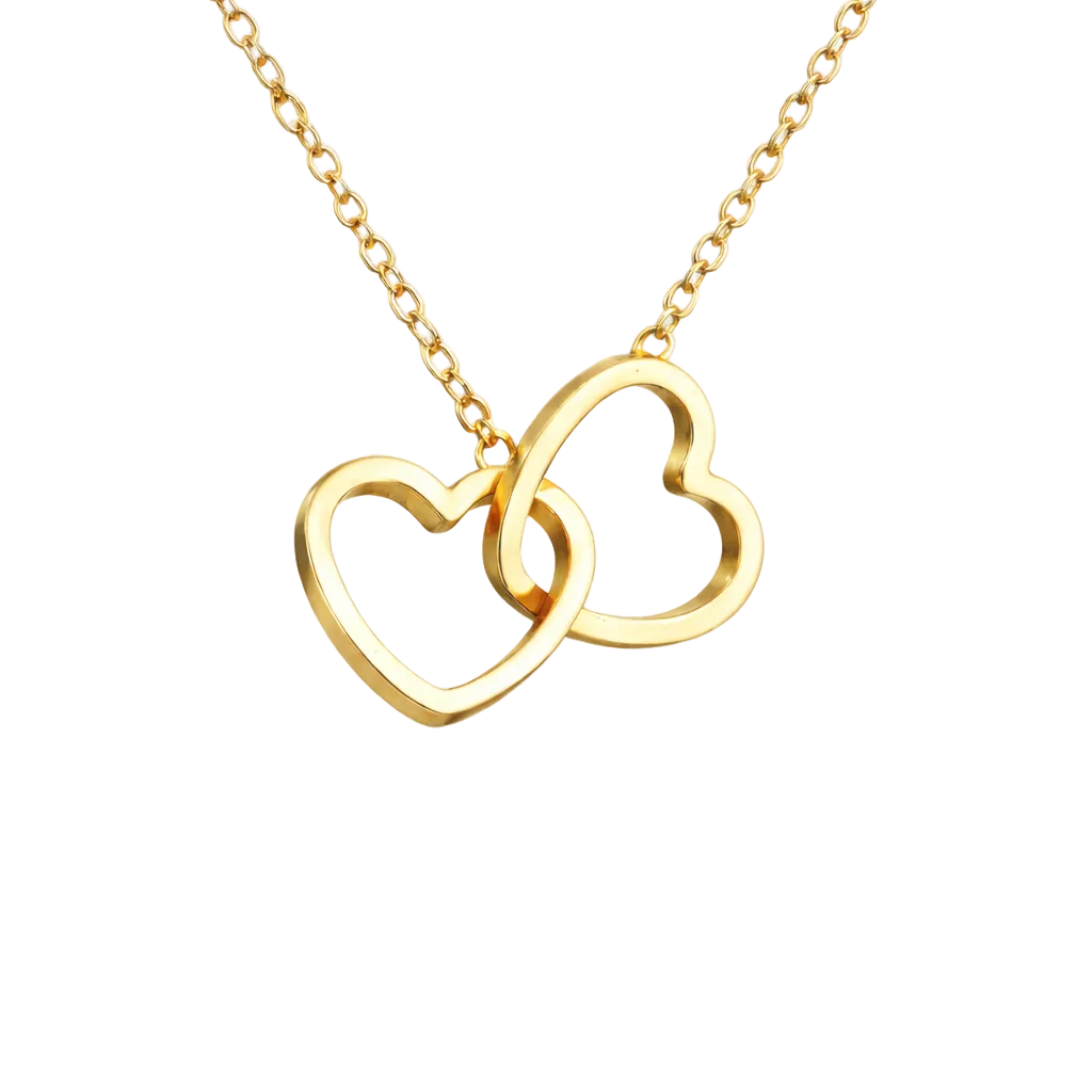 Deine Kette besteht aus Edelstahl im Gold-Look – elegant, modern und perfekt zum täglichen Tragen. Wähle dein Design: Doppelherz (verbundenes Symbol) oder Einzelherz mit Stein (dezenter Glanz). Ein kleines Detail, das das Geschenk noch persönlicher macht.